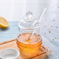 Tarro de almacenamiento de miel de vidrio en forma de panal de miel, bote de miel de abeja con tapa de vidrio y varilla agitadora